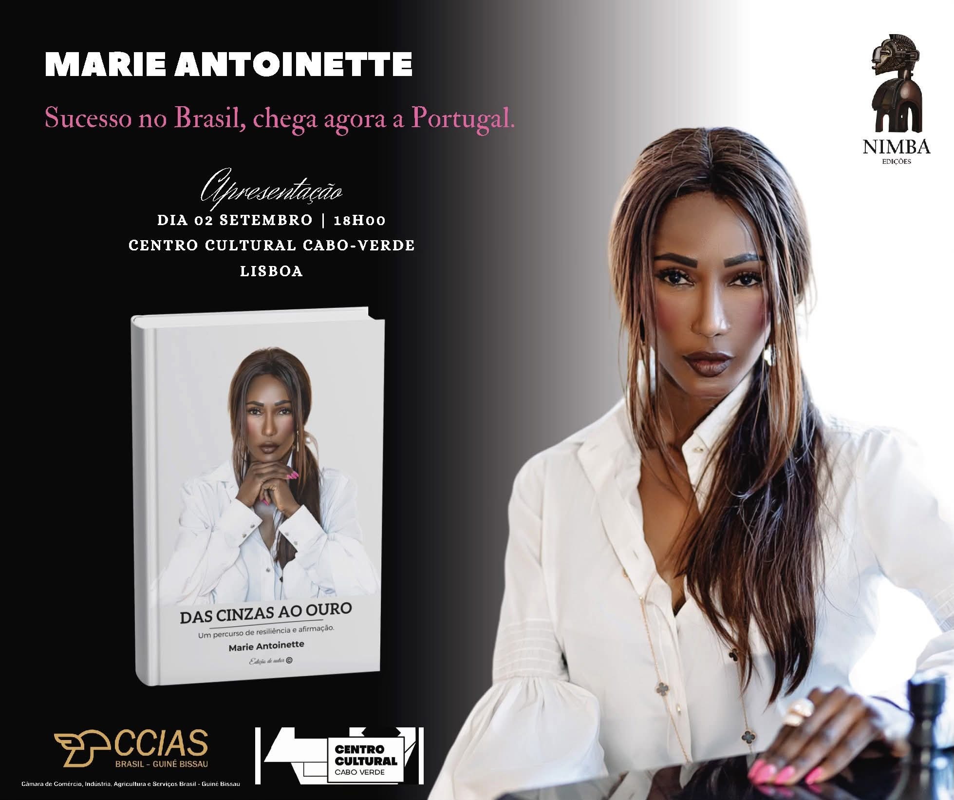 Depois de conquistar o público no Brasil, Marie Antoinette chega agora a Portugal para apresentar a sua autobiografia Das Cinzas ao Ouro, um livro inspirador que reflete a força, coragem e determinação de transformar desafios em oportunidades, assim como ser mãe, ter liberdade económica e emocional sendo uma mulher negra. O lançamento ocorre no dia 2 de setembro, terça-feira, entre as 18h00 e as 19h30, no Centro Cultural de Cabo Verde (CCCV), em Lisboa.