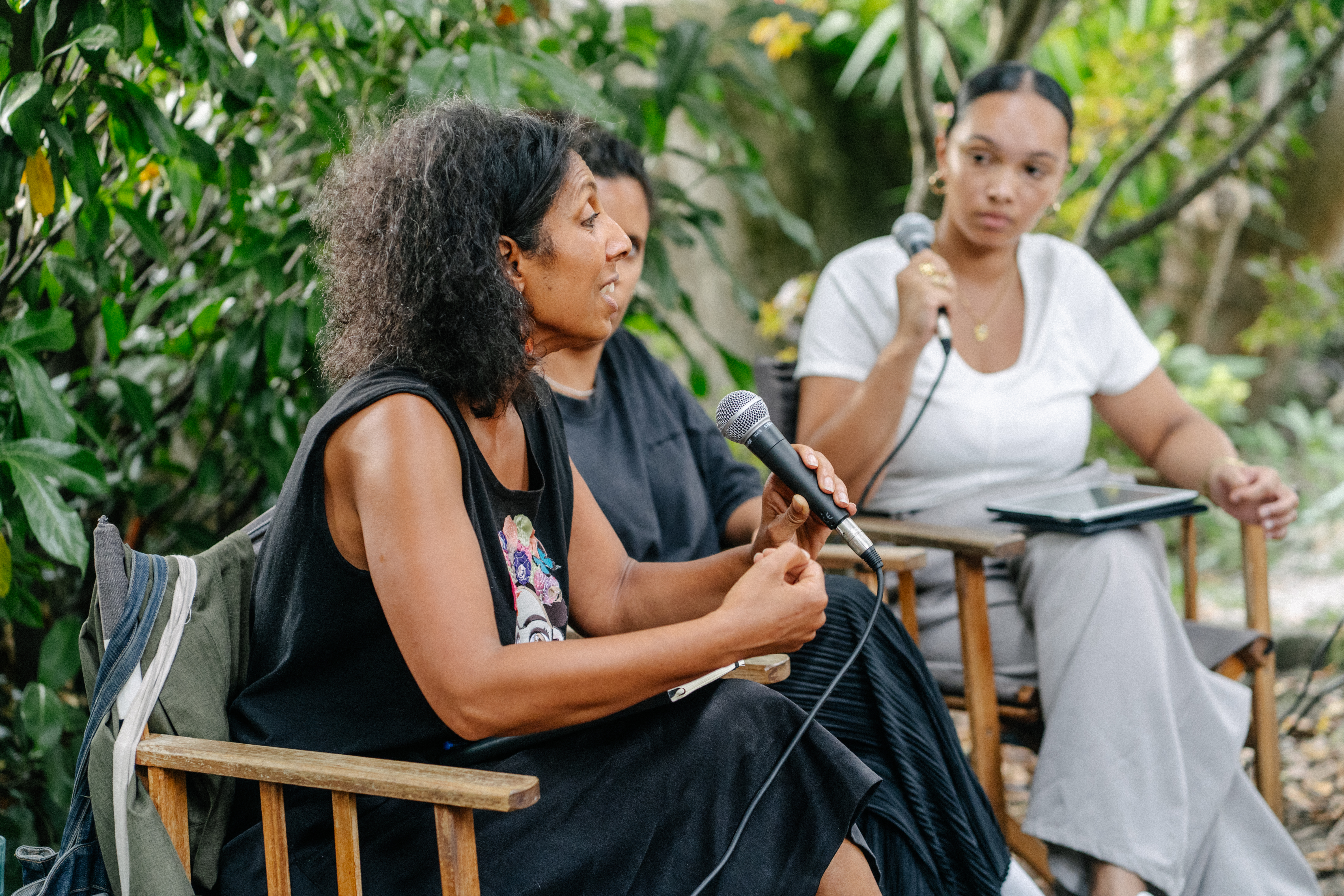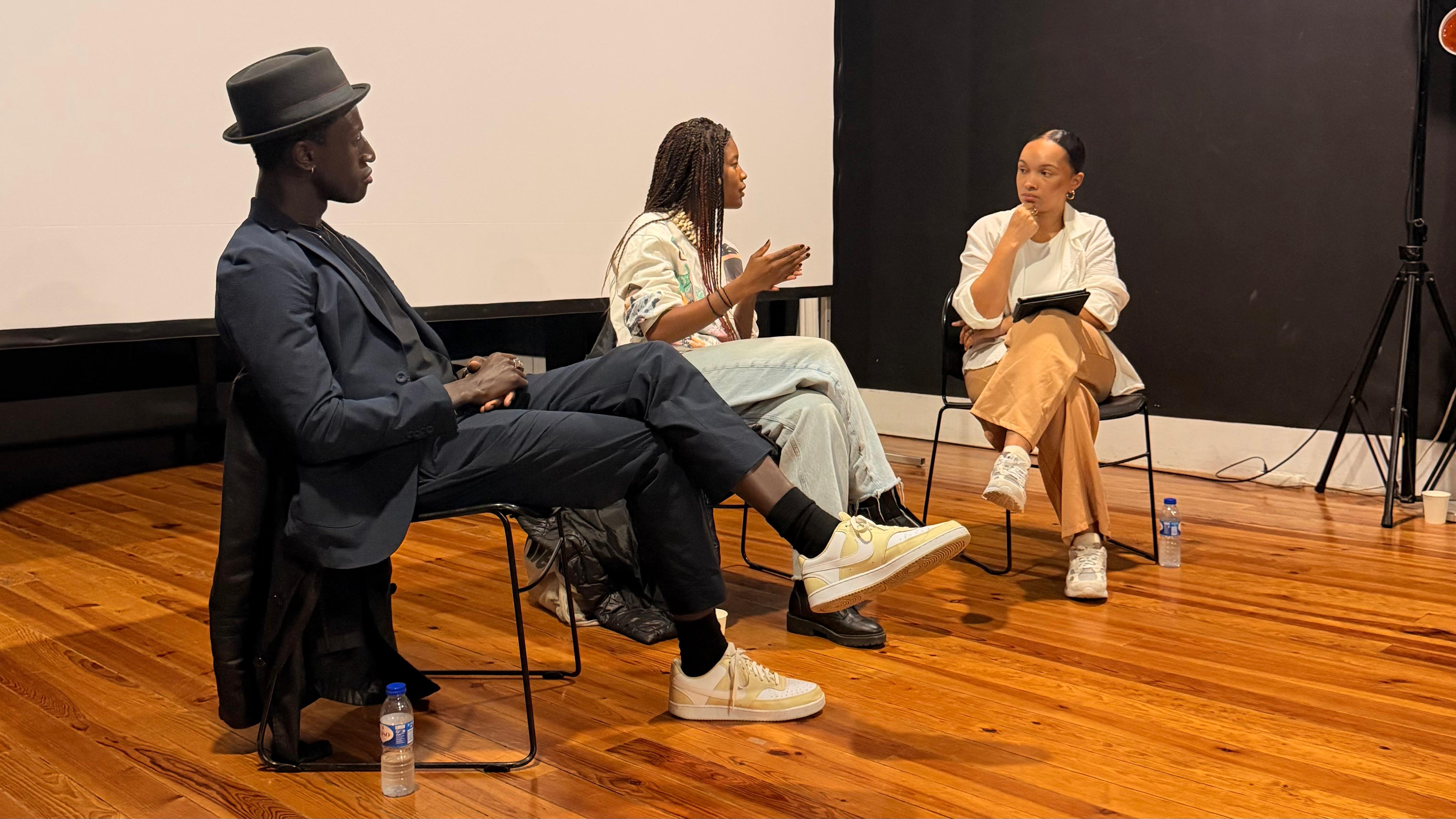 Welket Bungue, Cleo Diara e Marisa Mendes Rodrigues durante um debate no âmbito do MIA 2025 | Foto ©BANTUMEN