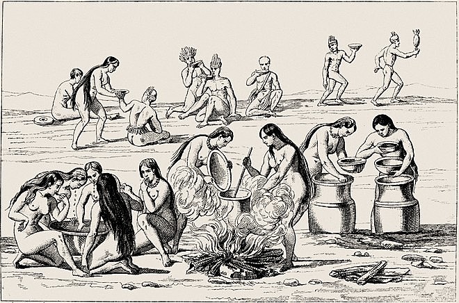 O cauim, como era conhecida a cerveja dos grupos Tupi-Guarani, era feito à base de mandioca (doce ou amarga) ou milho, podendo receber ingredientes extras, como mel ou frutas, para aumentar os teores de açúcar e, por consequência, de álcool. A arqueologia dos fermentados: a etílica história dos Tupi-Guarani – Revista da USP 2015.