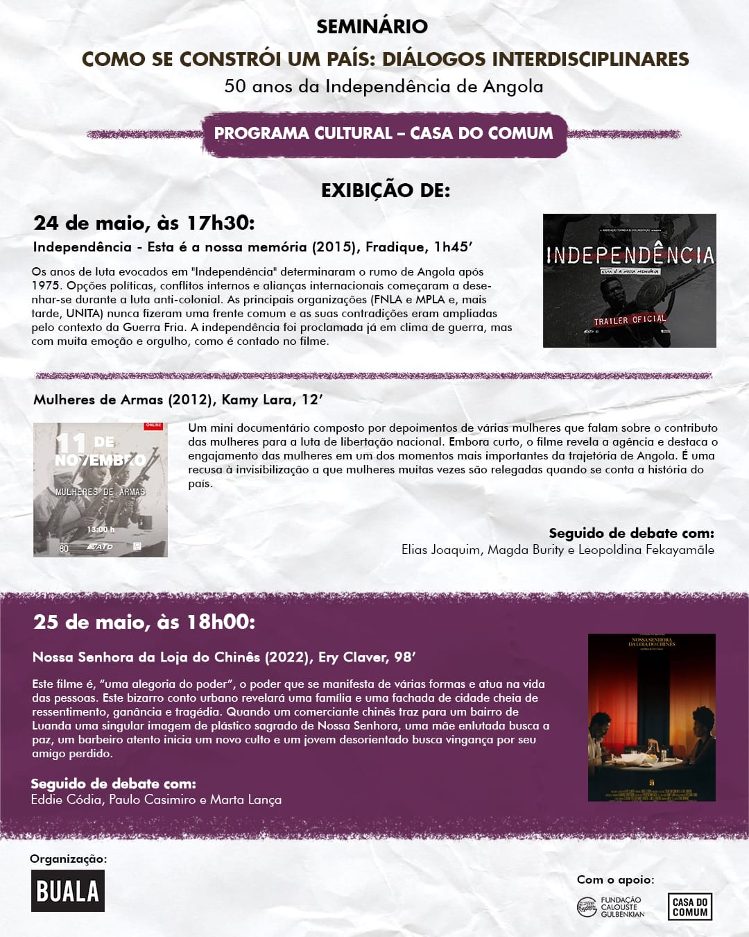 Organizado pelo BUALA, com financiamento da Fundação Calouste Gulbenkian, o seminário propõe um olhar crítico e plural sobre as cinco décadas que se seguiram à proclamação da independência, a 11 de novembro de 1975.