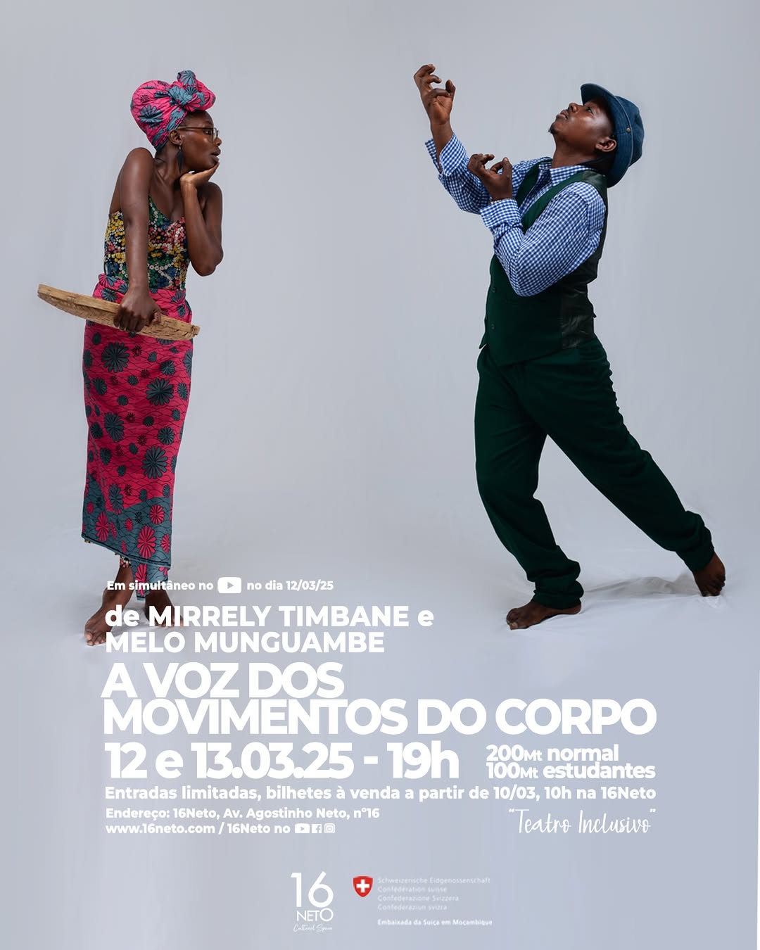 "A Voz dos Movimentos do Corpo" é uma peça de teatro inclusivo que será apresentada no Espaço Cultural 16NetO nos dias 12 e 13 de março, às 19h00.