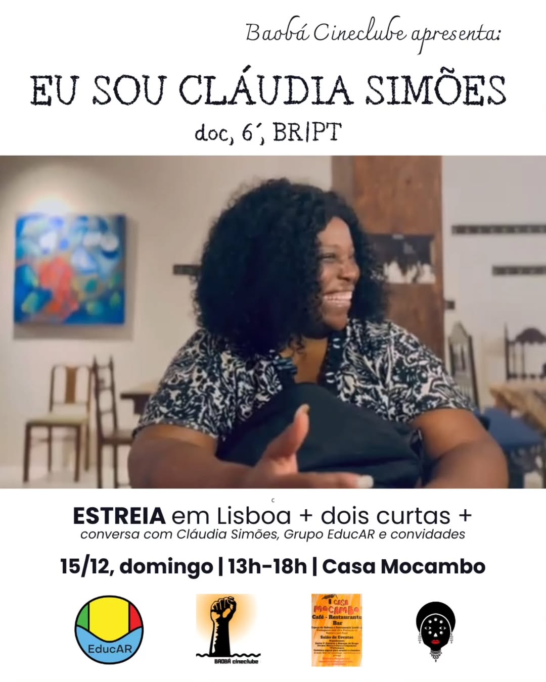 Para celebrar mais um ano de educação, o cineclube de Baobá, estreia duas curtas metragens, e uma conversa especial com Cláudia Simões para contar a sua história, a partir das 13 horas, no dia 15 de dezembro, na casa Macambo, em Lisboa.