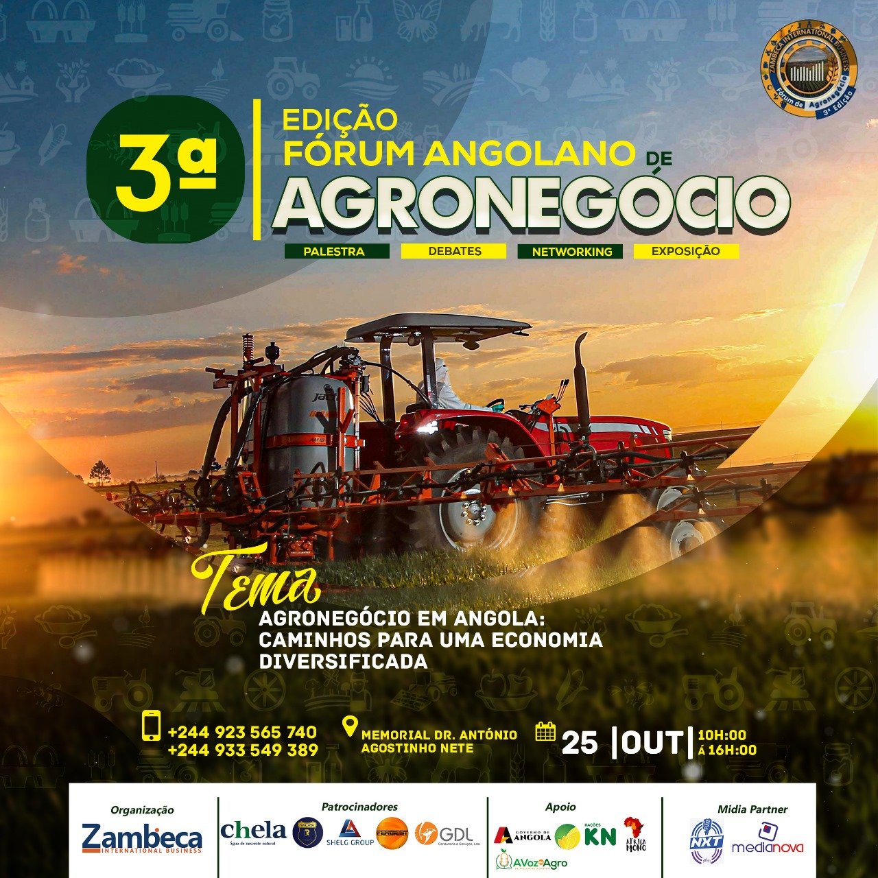 Na sua 3ª Edição, o Fórum afirma-se como uma plataforma estratégica, reunindo empresários, investidores, especialistas e decisores governamentais para debater temas cruciais que moldam o futuro do agronegócio no país. O evento tem como objetivo impulsionar parcerias estratégicas e explorar as melhores práticas que podem contribuir para a transformação e diversificação da economia angolana.