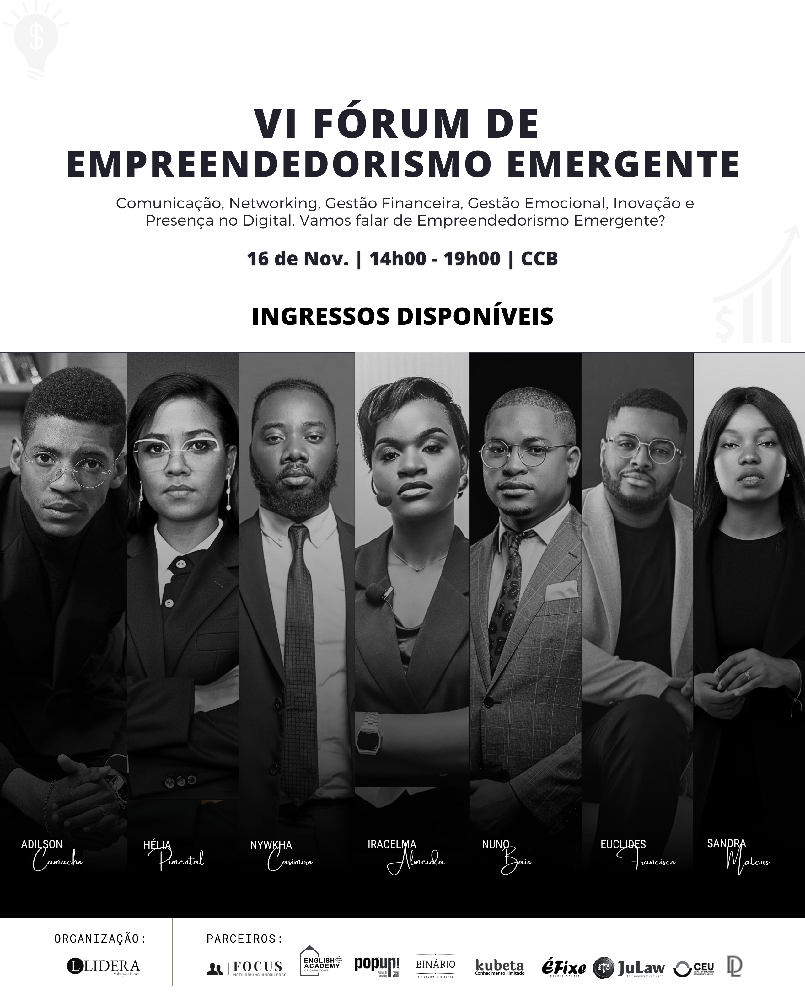 O VI Fórum de Empreendedorismo Emergente, organizado pela LIDERA, acontece no dia 16 de novembro de 2024, no Centro de Conferências de Belas (CCB).