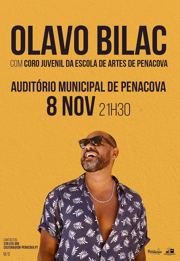 Nesta apresentação, Olavo Bilac contará com a participação especial do Coro Juvenil da Escola de Artes de Penacova, que subirá ao palco para partilhar as canções e a emoção de uma noite que promete ser memorável.
