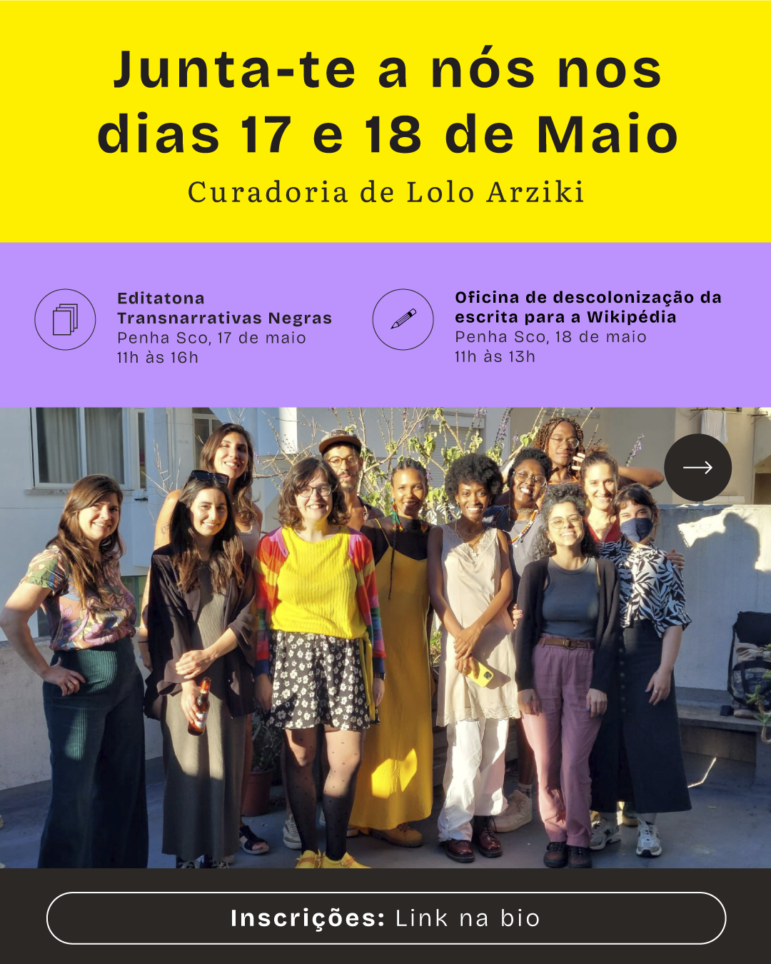 É com muito orgulho que compartilhamos a notícia da realização de nosso terceiro encontro “Transnarrativas Negras”, destinado a colocar no roteiro de pesquisa e visibilidade das Wiki Editoras Lx biografias de artistas trans negras notáveis.