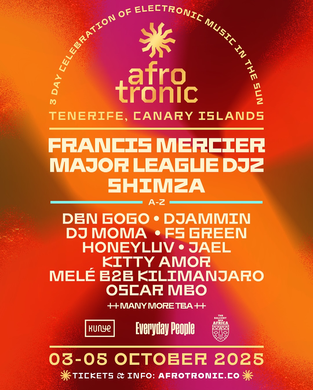 De 3 a 5 de Outubro de 2025, o Afrotronic volta com Francis Mercier, Major League DJz, Shimza, Dennis Ferrer, Culoe De Song, CLEIDO, Darque, DBN Gogo, DJammin, DJ Moma, Dlala Thukzin, FS Green, Honeyluv, Jael, Kitty Amor, Melé b2b Kilimanjaro, Oscar MBO, Rosey Gold e Stoffela.