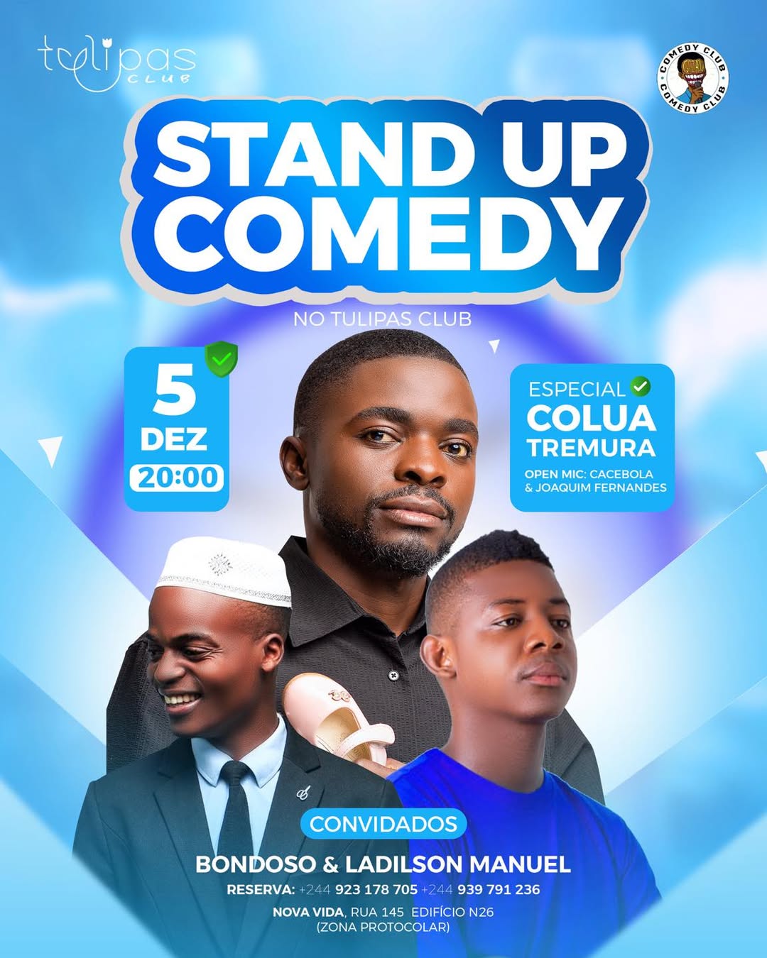 No dia 5 de Dezembro, às 20h00, o Tulipas Club, no Nova Vida, recebe uma nova edição do espetáculo de Stand Up Comedy com Colua Tremura. O humorista apresenta-se acompanhado por dois convidados: Bondoso e Ladilson Manuel, que integram o alinhamento principal da noite.