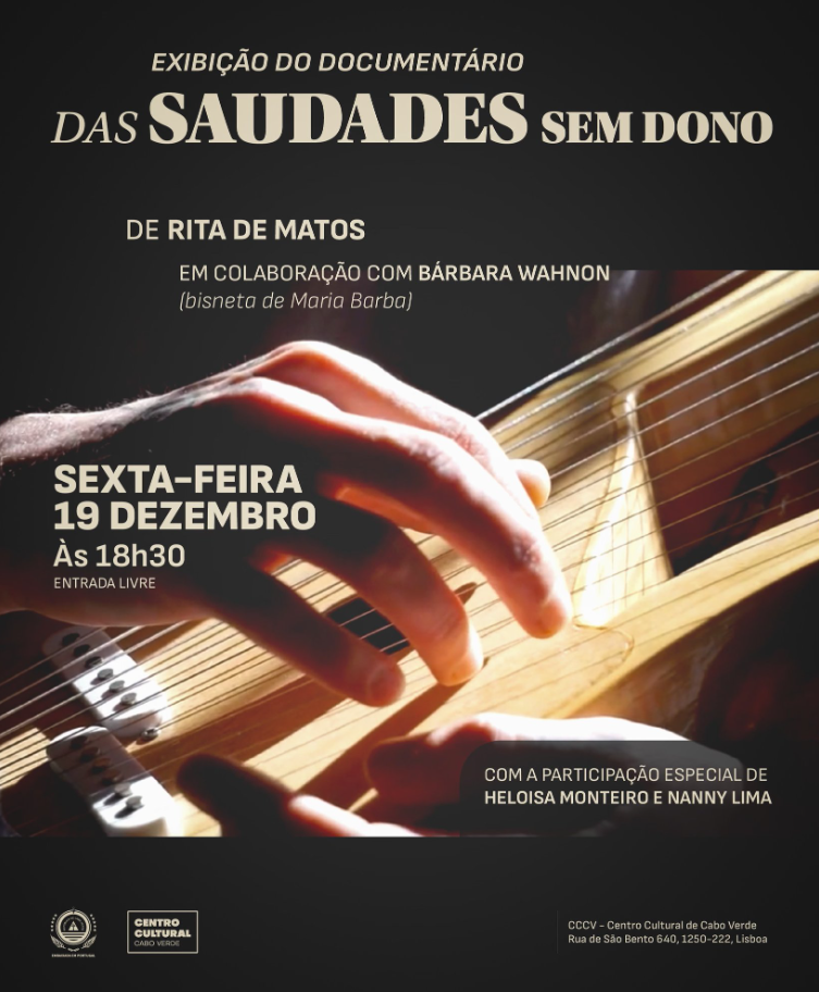Exibição do documentário “Das Saudades Sem Dono”, de Rita de Matos em colaboração com Bárbara Wahnon, sobrinha neta da lendária Maria Barba. O momento é dedicado à Morna e será abrilhantado com as participações de Heloisa Monteiro e Nanny Lima.