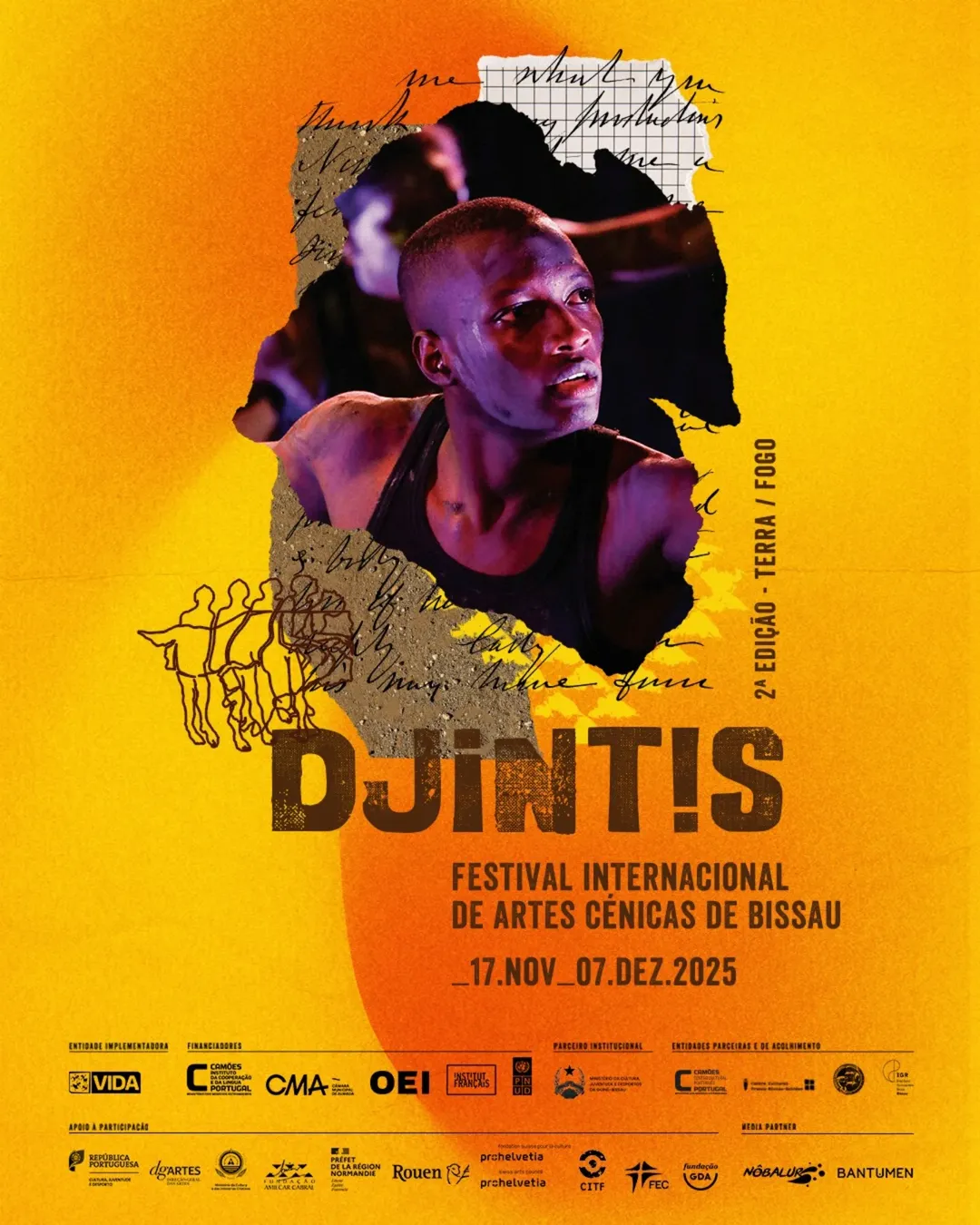 De 17 de novembro a 7 de dezembro de 2025, a cidade de Bissau volta a acolher o DJINTIS – Festival Internacional de Artes Cénicas, que chega à sua 2.ª edição sob o tema “Terra-Fogo”. O evento, que se consolida como um dos principais encontros artísticos da Guiné-Bissau, propõe uma reflexão simbólica sobre origem, conflito, memória, regeneração e (re)nascimento, a partir do diálogo entre artes e territórios.