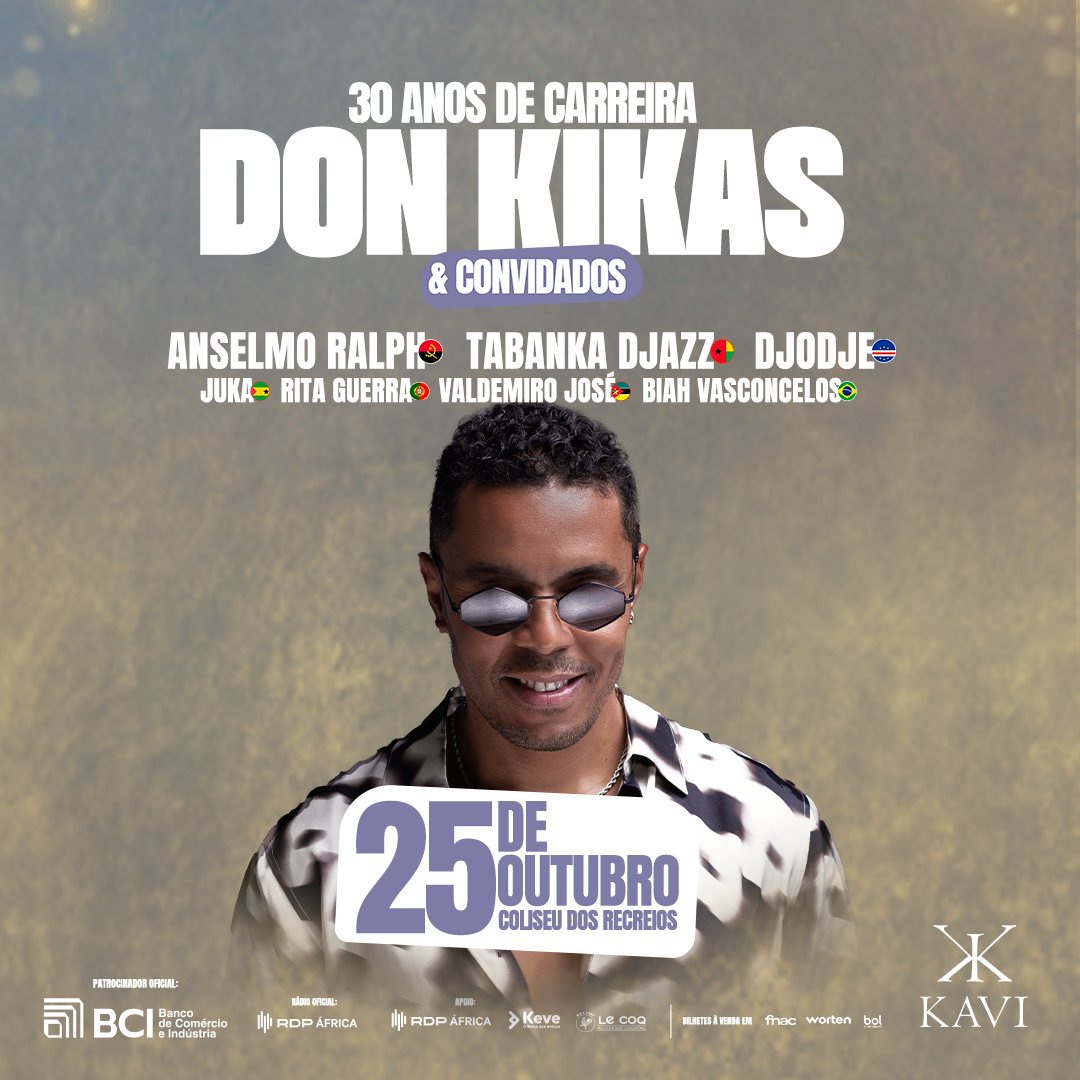Don Kikas, um dos músicos mais aclamados de Angola, celebra 3 décadas de uma carreira de sucesso com um concerto no Coliseu dos Recreios, em Lisboa, no dia 25 de outubro.