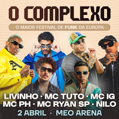 A MEO Arena, em Lisboa, recebe no dia 2 de abril, às 19h00, a primeira edição do festival O Complexo, um evento dedicado ao funk brasileiro que reúne vários artistas do género num mesmo palco.