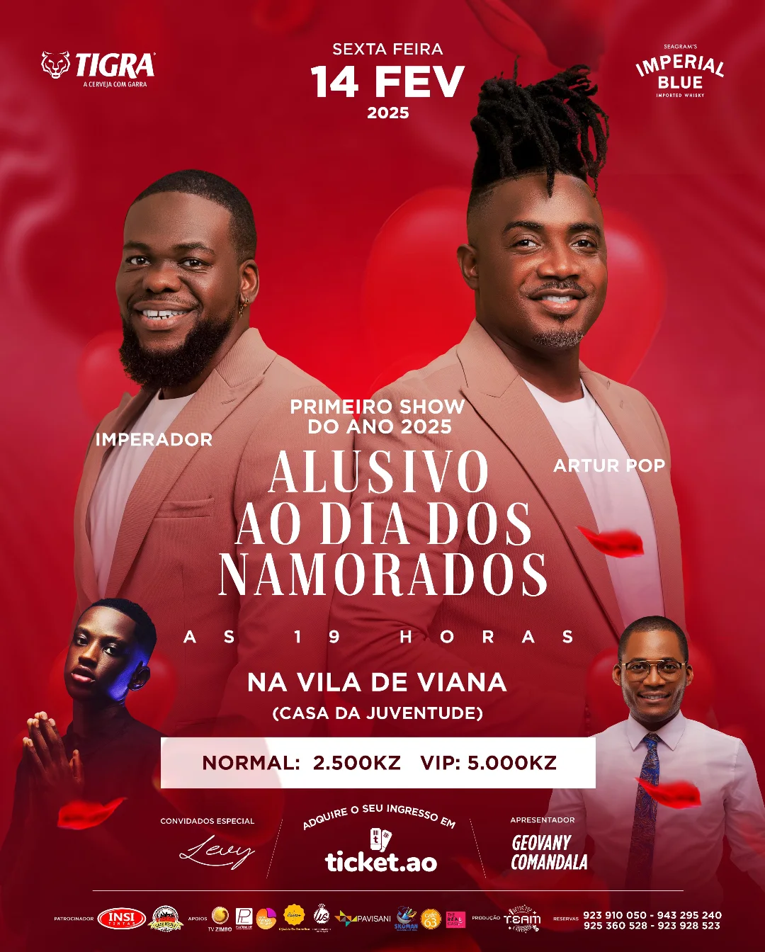 A dupla de humoristas Imperador e Artur Pop apresentam o primeiro show de 2025, no dia 14 de fevereiro, na Casa da Juventude, em Luanda.