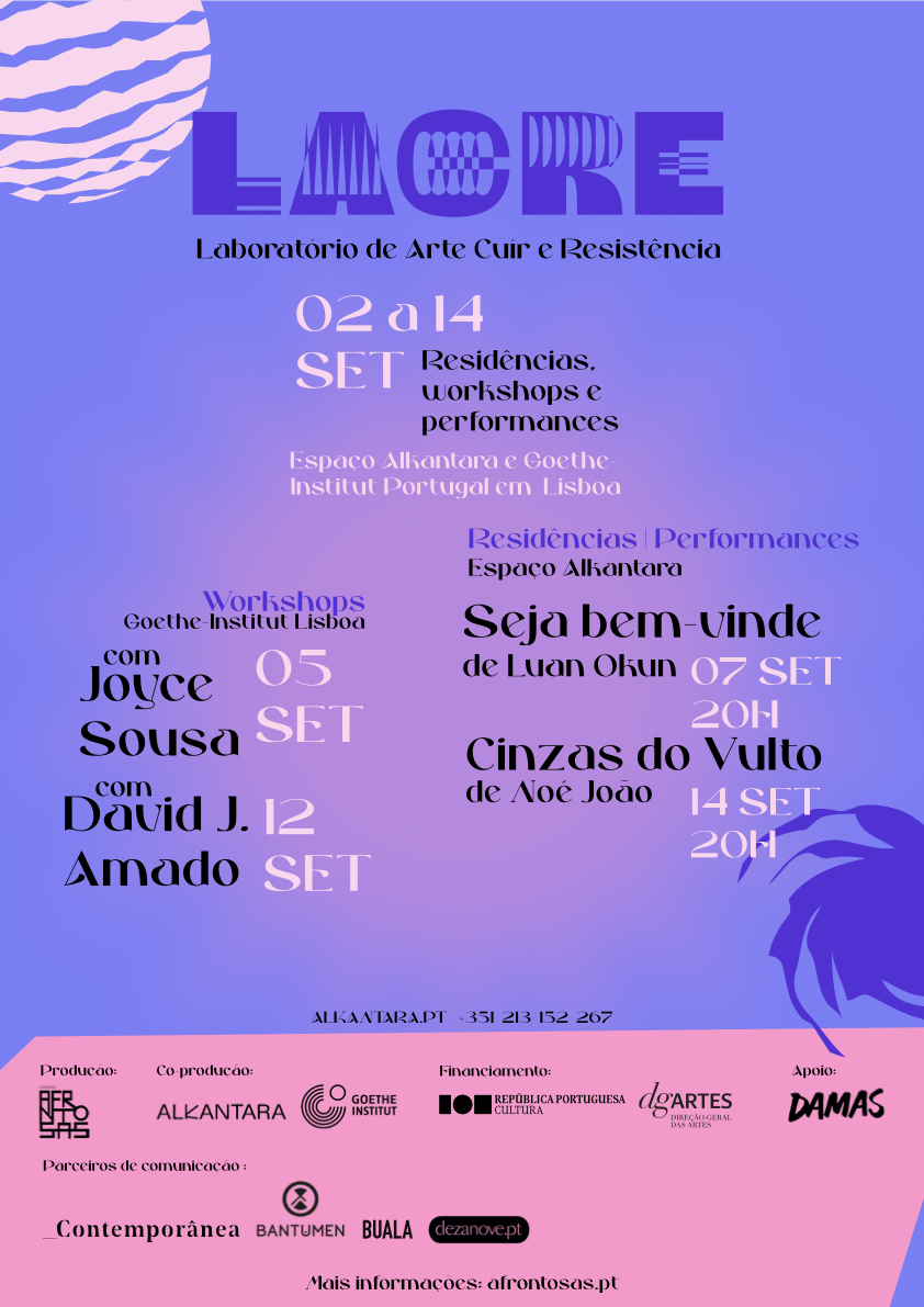 No seguimento da primeira edição realizada em 2023, o LACRE - Laboratório de Arte Cuír e Resistência regressa de 2 a 14 de setembro para uma segunda edição pelo Coletivo Afrontosas, entre o Espaço Alkantara e o Goethe-Institut Portugal.