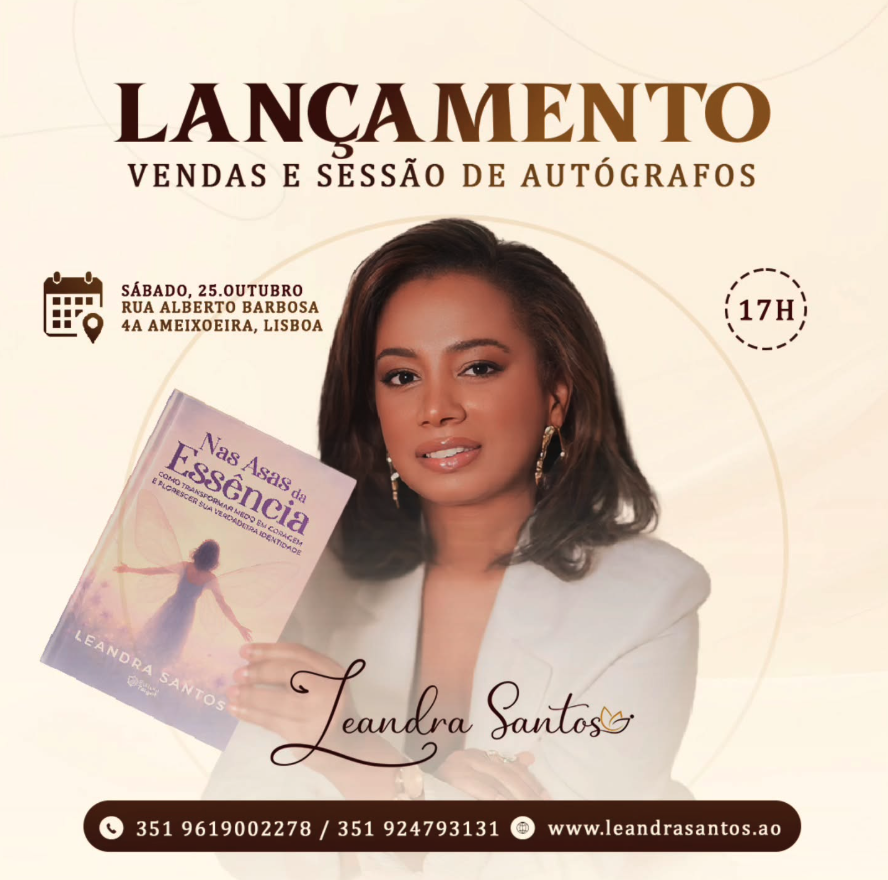 Leandra Santos vai apresentar o livro Nas asas da Essência a 25 de outubro, em Lisboa. A obra partilha as experiências e reflexões da autora sobre auto-estima, medo e coragem.