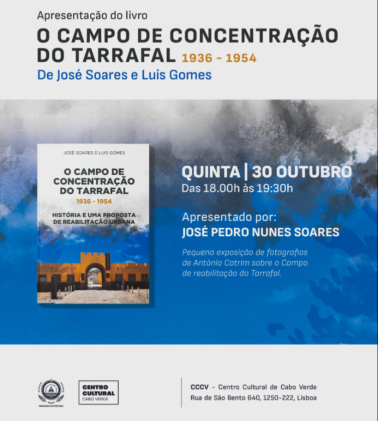 O Centro Cultural de Cabo Verde recebe, no dia 30 de outubro, pelas 18h00, a apresentação da nova edição do livro “O Campo de Concentração do Tarrafal - 1936-1954”, de José Soares e Luís Gomes. A sessão contará com a presença dos autores e apresentação de José Pedro Nunes Soares, numa conversa sobre memória, política e património histórico. A entrada é livre.