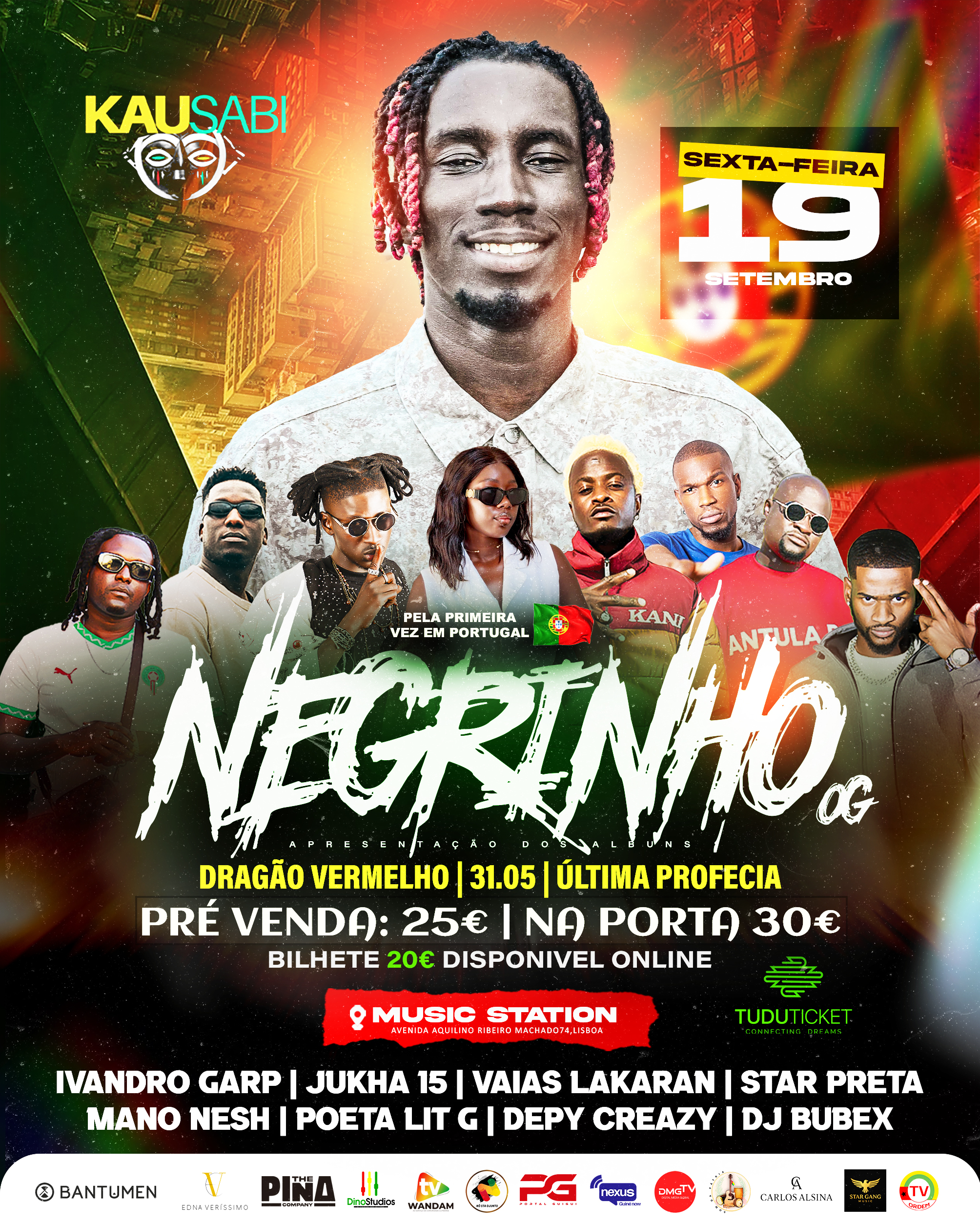 Considerado um dos nomes mais polémicos e, ao mesmo tempo, mais autênticos da nova geração musical guineense, Negrinho OG está com tudo pronto para o primeiro concerto em Portugal que promete marcar a sua carreira. O evento acontece no próximo 19 de setembro, no Music Station, em Lisboa, e será a ocasião para a apresentação oficial dos seus álbuns Dragão Vermelho, 31.05 e Última Profecia.