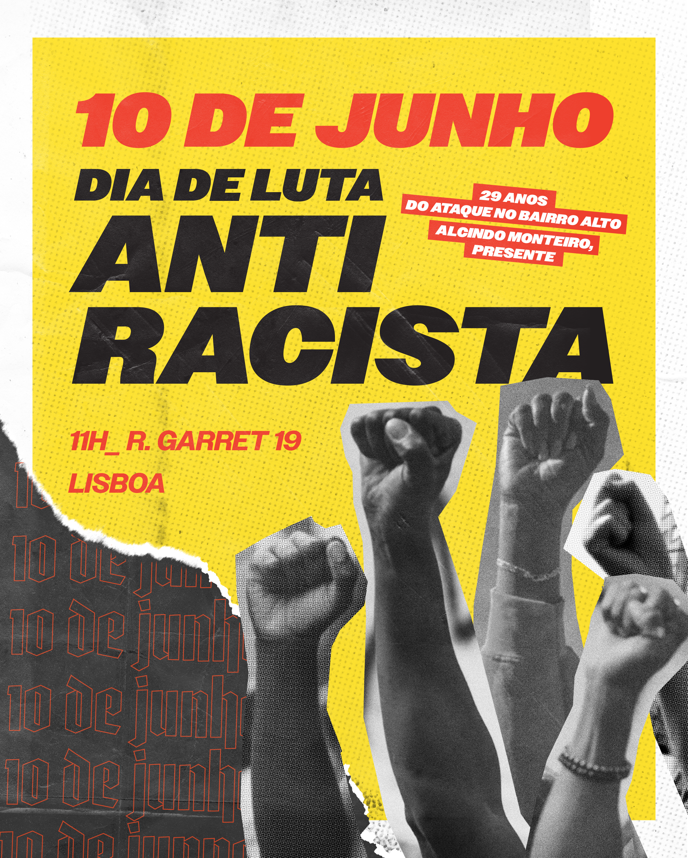 O dia 10 de Junho é um dia de luta contra o racismo, um dia para honrar a memória daqueles que foram vítimas da intolerância e da discriminação racial. Por isso, relembramos o trágico evento ocorrido neste dia, em 1995, quando o cidadão cabo-verdiano Alcindo Monteiro foi brutalmente assassinado por um grupo neonazi e racista no Bairro Alto, em Lisboa, num dia marcado por outras brutais agressões de cariz racista. Neste dia 10 de Junho, lembramos Alcindo Monteiro e exigimos justiça para todas as vítimas da violência racista em Portugal. Assim, como Alcindo, os nomes de Bruno Candé, Cláudia Simões, Musso, Elson Sanches “Kuku”, Nuno Manaças Rodrigues “Mc Snake”, Carlos Reis, Wilson Neto, Luís Giovani Rodrigues, Ihor Homeniuk, António Pereira (Xuati), Gurpreet Singh, Ademir Araújo Moreno, ou os seis da esquadra de Alfragide, ecoam como símbolos da luta contínua contra a violência racial em Portugal.