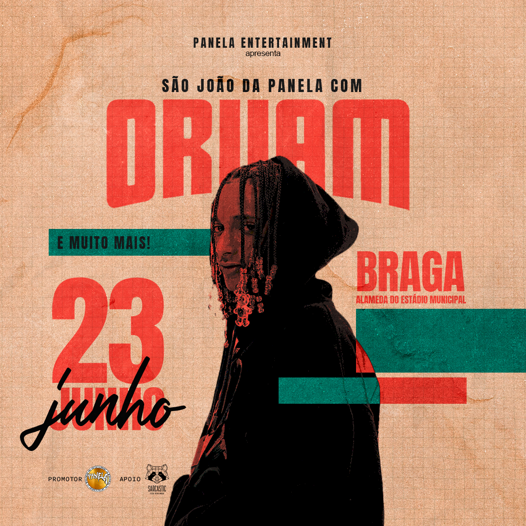 A Panela Entertainment apresenta... "São João da Panela" com concerto de ORUAM. O mais mediático artista de rap e trap brasileiro da atualidade, DJS, e muitas outras surpresas, que vão levar a melhor animação à Alameda do Estádio Municipal de Braga.
