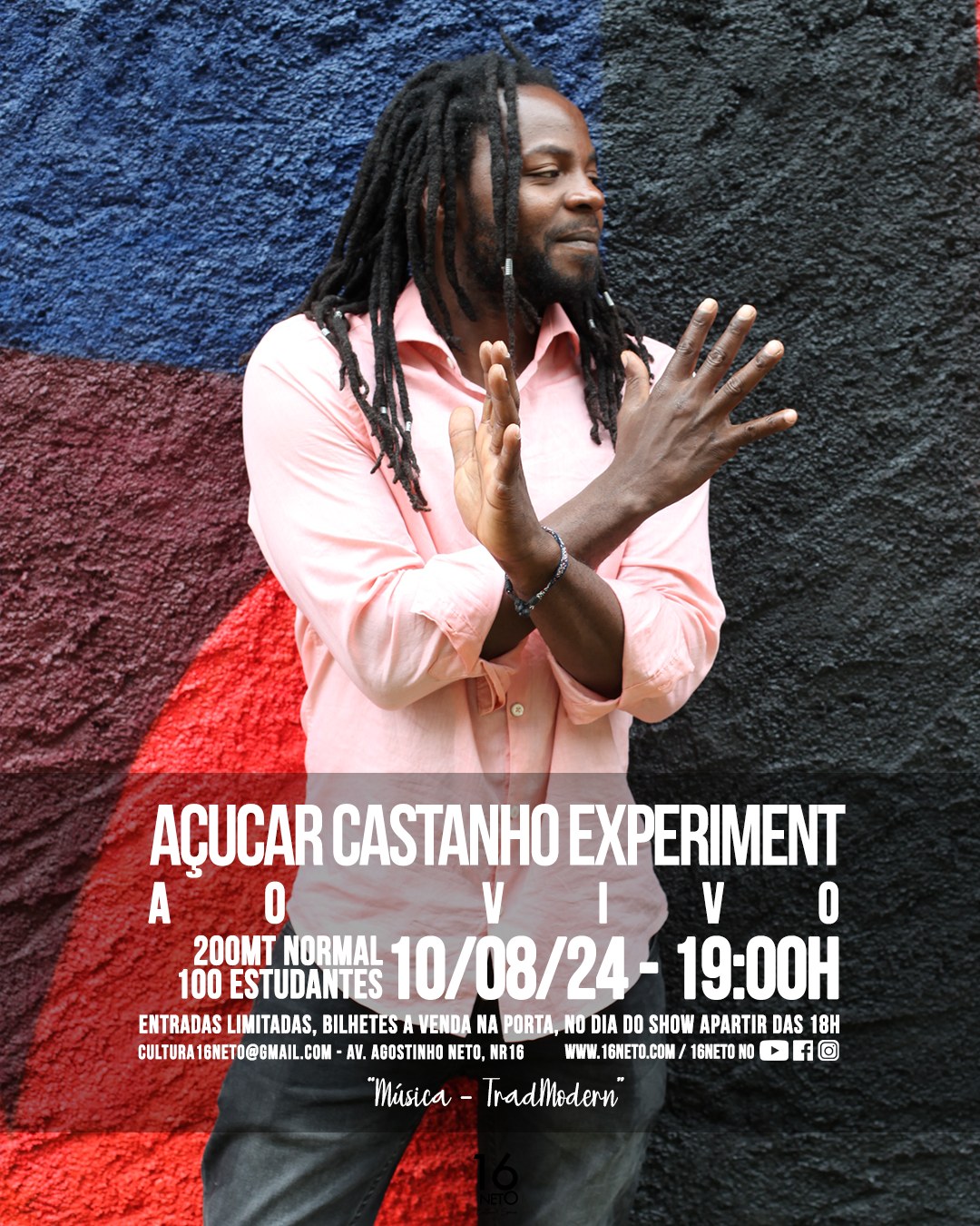 No dia 10, às 19h, no 16NetO, apresentaremos “Açúcar Castanho Experiment” de Samito Tembe, um concerto que compartilha a alegria da música experimental àmoda moçambicana. Açúcar Castanho Experiment toca “TradModern” (TradicionalModerno) como estilo musical, com algumas tendências à música contemporânea.