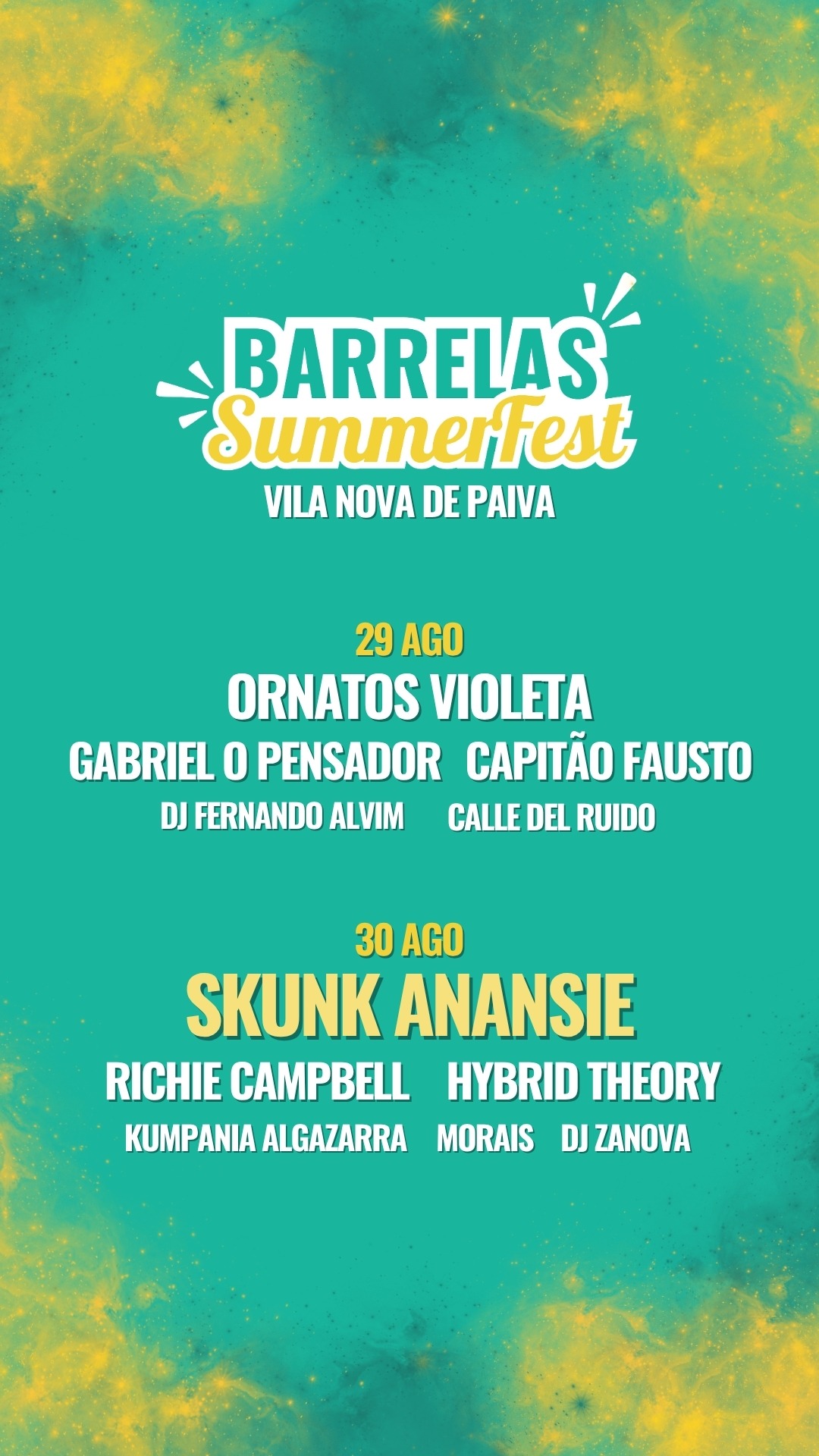A 29 de agosto, o festival promete uma noite inesquecível com alguns dos nomes mais marcantes da música portuguesa, brasileira e ibérica. Os Ornatos Violeta, banda de culto do rock nacional, Gabriel O Pensador, referência incontornável do hip hop brasileiro, a energia vibrante dos Capitão Fausto e a fusão explosiva de rock, metal e sintetizadores dos espanhóis Calle del Ruído sobem ao palco. A noite encerra com um DJ set muito especial de Fernando Alvim — com a sua habitual seleção imprevisível de clássicos e raridades que surpreende e faz dançar.