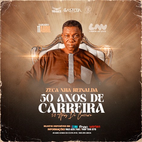 O cantor cabo-verdiano Zeca Nha Reinalda apresenta-se no dia 11 de abril, às 22h00, na LAV – Lisboa ao Vivo, em Lisboa, num concerto comemorativo que assinala 50 anos de carreira. Reconhecido como uma das vozes marcantes do funaná e da música de Cabo Verde, o artista revisita neste espetáculo alguns dos temas que marcaram o seu percurso, entre eles “Tó Martins”, “Sant’Antoni la Belém”, “Si Manera” e “Proverbio”, canções que se tornaram referências dentro da música cabo-verdiana.
